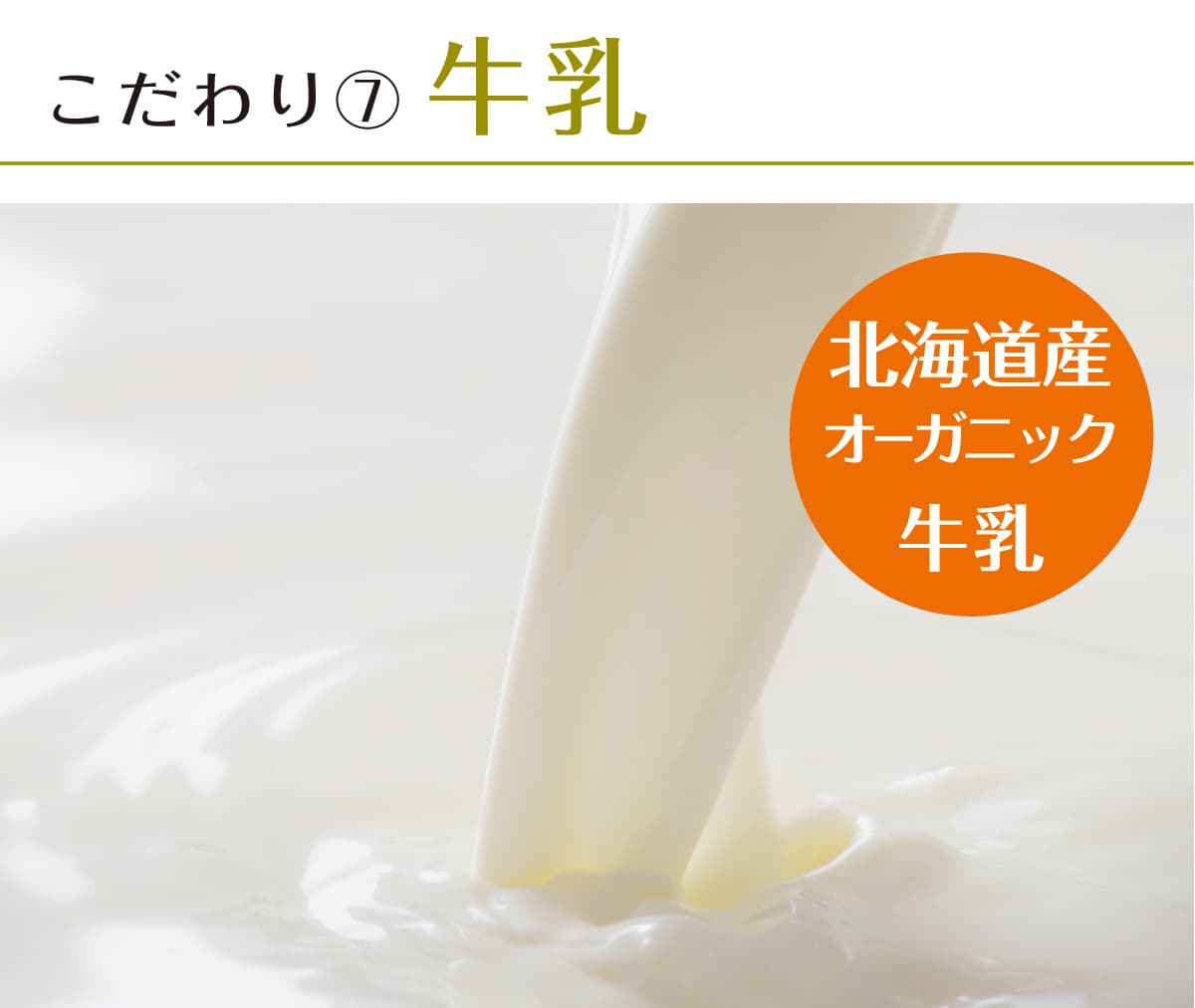 有機JAS認証を受け、化学的に合成された農薬や肥料を使わずに栽培された飼料で育てられた牛からとれる北海道産オーガニック牛乳のみを使用しています。