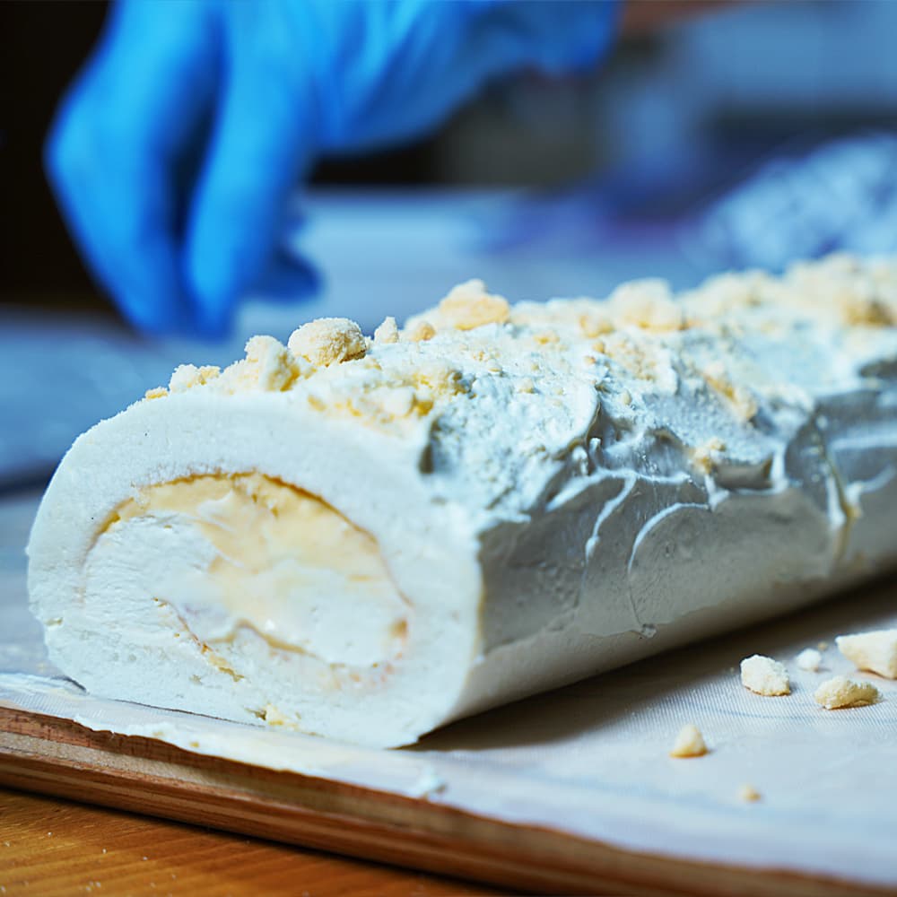 伊ロールは、食べる直前に付属の伊ロールラスクパウダーをかけていただく事で完成します。