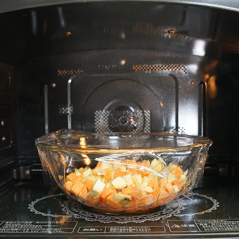 取り出したら、軽く混ぜ、もう一度レンジに入れます。