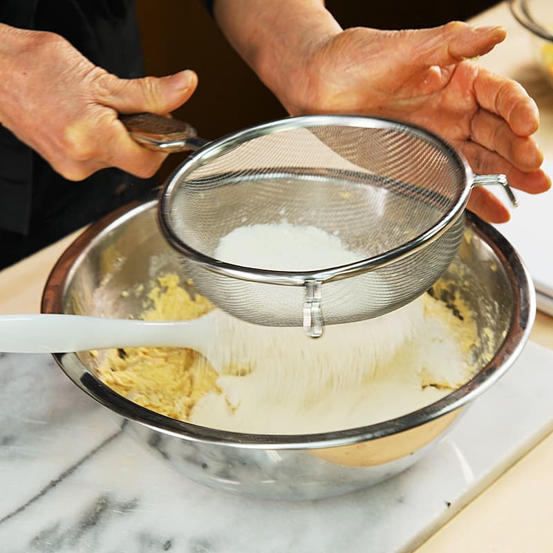 アーモンドプードル・米粉・スキムミルク・ベーキングパウダーを3回ほどに分けて入れながら混ぜていきます。※あらかじめ3回ほど振るったものを用意してください。