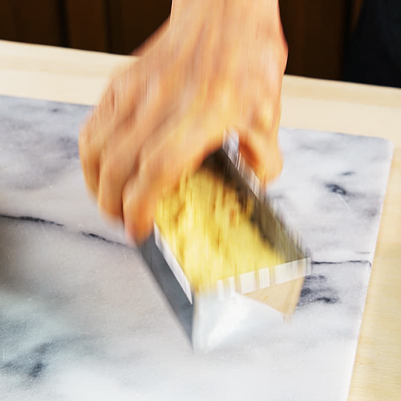 取り出したら、225gのブロック用を取り出して、残りの275gをレンジに入れます。